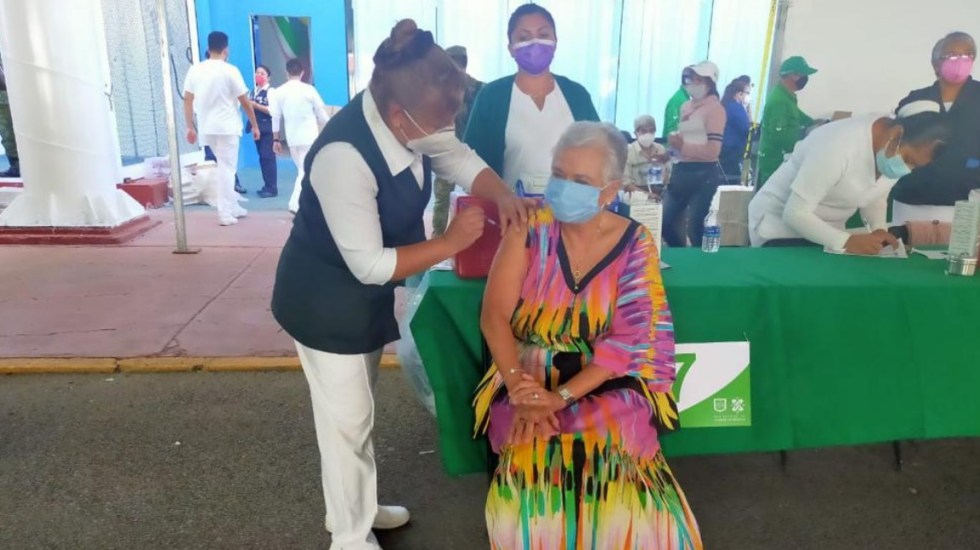 Sánchez Cordero se convierte así en el primer miembro del Gabinete Federal que recibe la vacuna contra COVID-19 desde que inició la campaña de vacunación a adultos mayores en México.