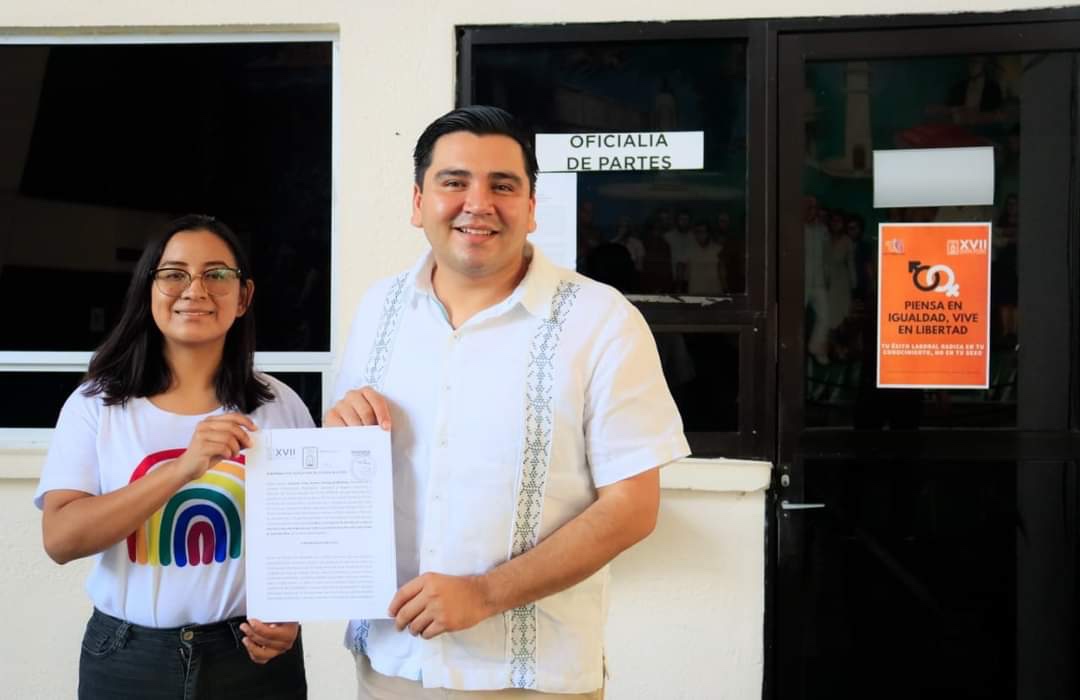 Acompañado de la regidora Grecia Coral Pasos, presidenta de la Comisión de Juventud y Diversidad del Ayuntamiento de Othón P. Blanco, el diputado Omar Rodríguez ingresó esta iniciativa a Oficialía de Partes del Congreso, cumpliendo un compromiso más de campaña y siendo impulsor de la democracia incluyente.