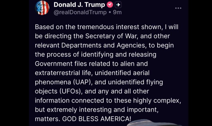 La acción involucrará al Departamento de Guerra y a otras agencias federales, y busca transparentar información que durante décadas ha generado especulación sobre fenómenos aéreos no identificados y posibles formas de vida extraterrestre, según amplió el mandatario.