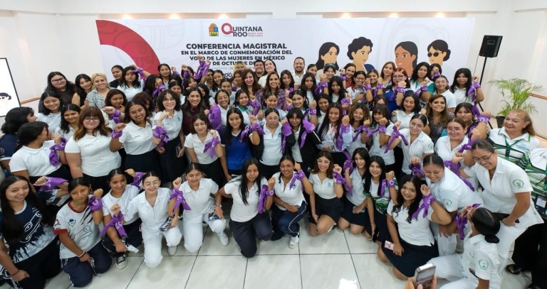 Con motivo de la conmemoración del 72 aniversario del reconocimiento del voto de las mujeres en México, la gobernadora Mara Lezama Espinosa participó en la Conferencia Magistral “Violencia Política de las Mujeres en Razón de Género en Redes Sociales”, evento que reunió a representantes de los tres poderes del Estado, autoridades electorales y académicas.