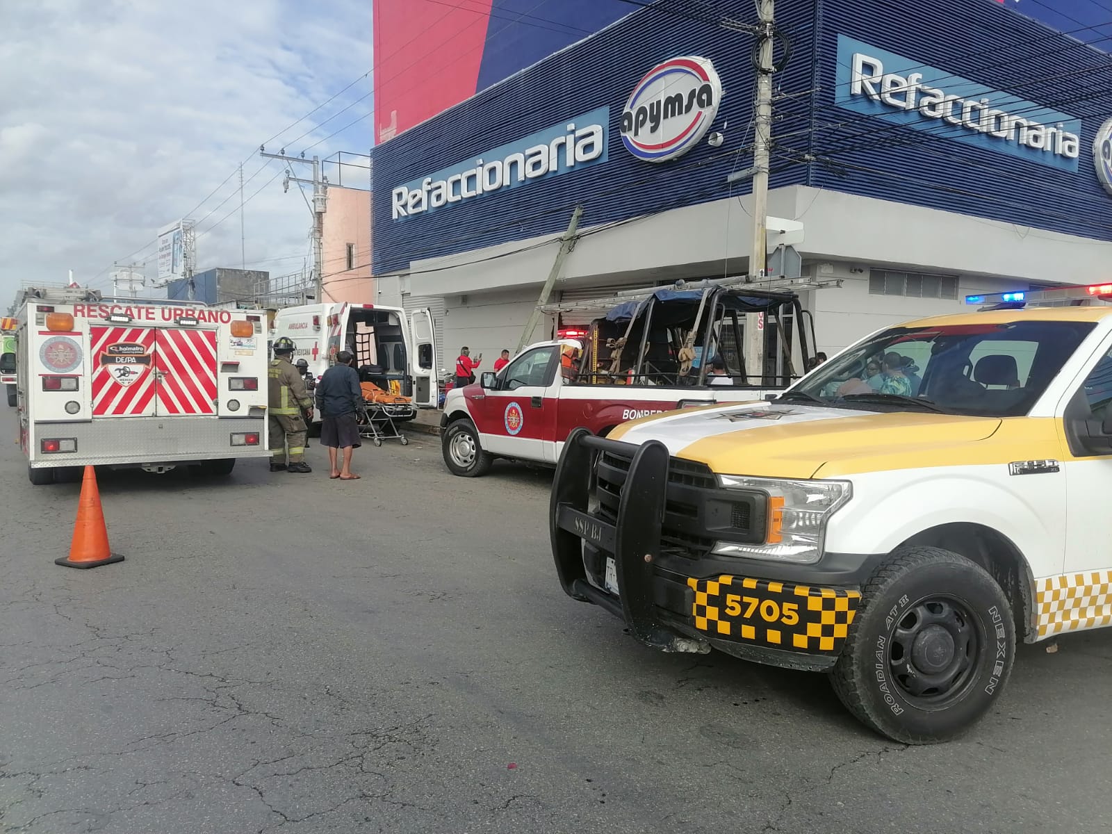 En el sitio se logró observar cómo el conductor de un Volkswagen Jetta, color blanco, se impactó en la entrada de la refaccionaria Apymsa, quien durante su paso atropelló a las víctimas que se encontraban sobre la banqueta.