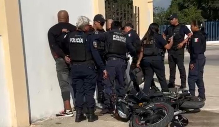 Una persecución policiaca que inició sobre la avenida Chac Mool culminó con la detención de dos hombres de origen cubano en el fraccionamiento Vista Real 2, en la Supermanzana 255, luego de que intentaran evadir a elementos de la Policía Municipal y derraparan la motocicleta en la que se desplazaban.