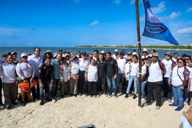 Tras izar la bandera azul que certifica la calidad del balneario Punta Esmeralda, la alcaldesa Estefanía Mercado destacó que su gobierno trabaja con el sector empresarial para regularizar el camino de acceso al lugar.