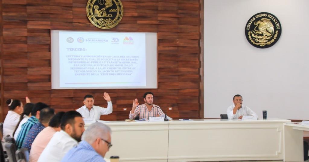 El presidente de esta Comisión informó que se aprobó el acuerdo para solicitar a la Secretaría de Seguridad Pública y Tránsito Municipal una auditoría de movilidad y seguridad vial en Avenida Chemuyil entre Tecnológico y Jacinto Pat, frente a la Cruz Roja. “Se solicita esta auditoría sobre todo para prevenir que en caso de que sea por alguna de estas condiciones, tales como señalética, si es un tema aislado, de condiciones de infraestructura, no exista la repetición al respecto y para cuidar a quienes transitan por la zona”, explicó.