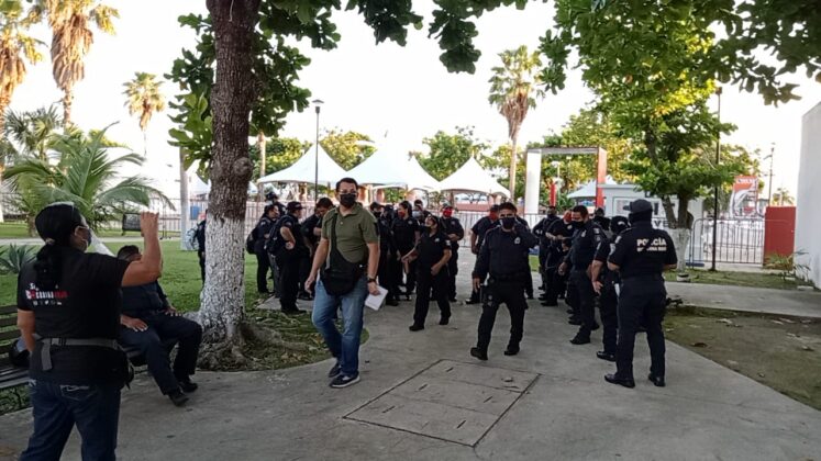 Aseguraron que la seguridad de la Isla no está descuidada, pues hay elementos que siguen trabajando, los que están en la manifestación son los que entran y los francos; es una manifestación pacífica a tal grado que los policías están desarmados.