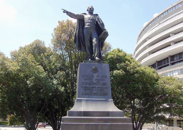 Entre las avenidas Virginia y New Hampshire, a solo nueve cuadras de la Casa Blanca, se levanta en Washington el monumento al expresidente mexicano Benito Juárez (1806 – 1872) que visitará durante su primer viaje oficial al extranjero, el presidente Andrés Manuel López Obrador después de visitar el memorial de Abraham Lincoln (1809 – 1865).
