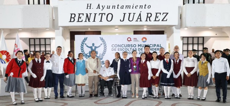 Con la participación de aproximadamente 150 estudiantes de 14 escuelas secundarias, la Presidenta Municipal, Ana Paty Peralta, premió a las y los ganadores de la etapa final de la quinta edición del Concurso Municipal de Escoltas Nivel Secundaria 2025–2026, donde reafirmó su compromiso con la formación cívica, el bienestar y el desarrollo de las juventudes cancunenses.