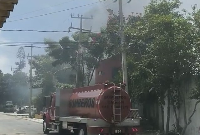 Se registra un fuerte incendio al interior del antiguo Hospital General en la Supermanzana 65 en Cancún.