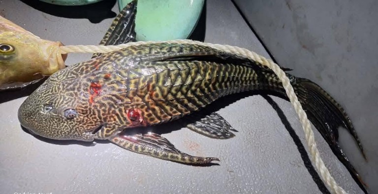 En Bacalar se han encendido las alarmas al detectar la presencia del pez diablo (Pterygoplichthys), una especie invasora y depredadora que fue encontrada recientemente en el cenote Negro, uno de los cuerpos de agua más emblemáticos de la laguna de Bacalar.