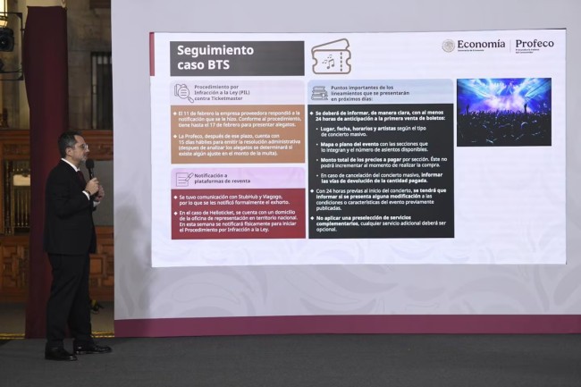 En la misma conferencia, Escalante dio a conocer atualizaciones realizadas con los conciertos del grupo surcoreano BTS, luego de que se registraran diversas quejas por parte de consumidores. Aunque no detalló sanciones específicas, aseguró que Profeco continúa revisando el caso para proteger los derechos de quienes adquirieron entradas.