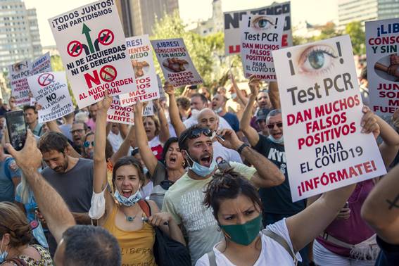 Inclusive se abrazaron unos a otros, sentenciaron que el único virus es el miedo y gritaron consignas como “¡Libertad, libertad!”, “falsos test, falsos positivos” y “no somos delincuentes, queremos respirar”.