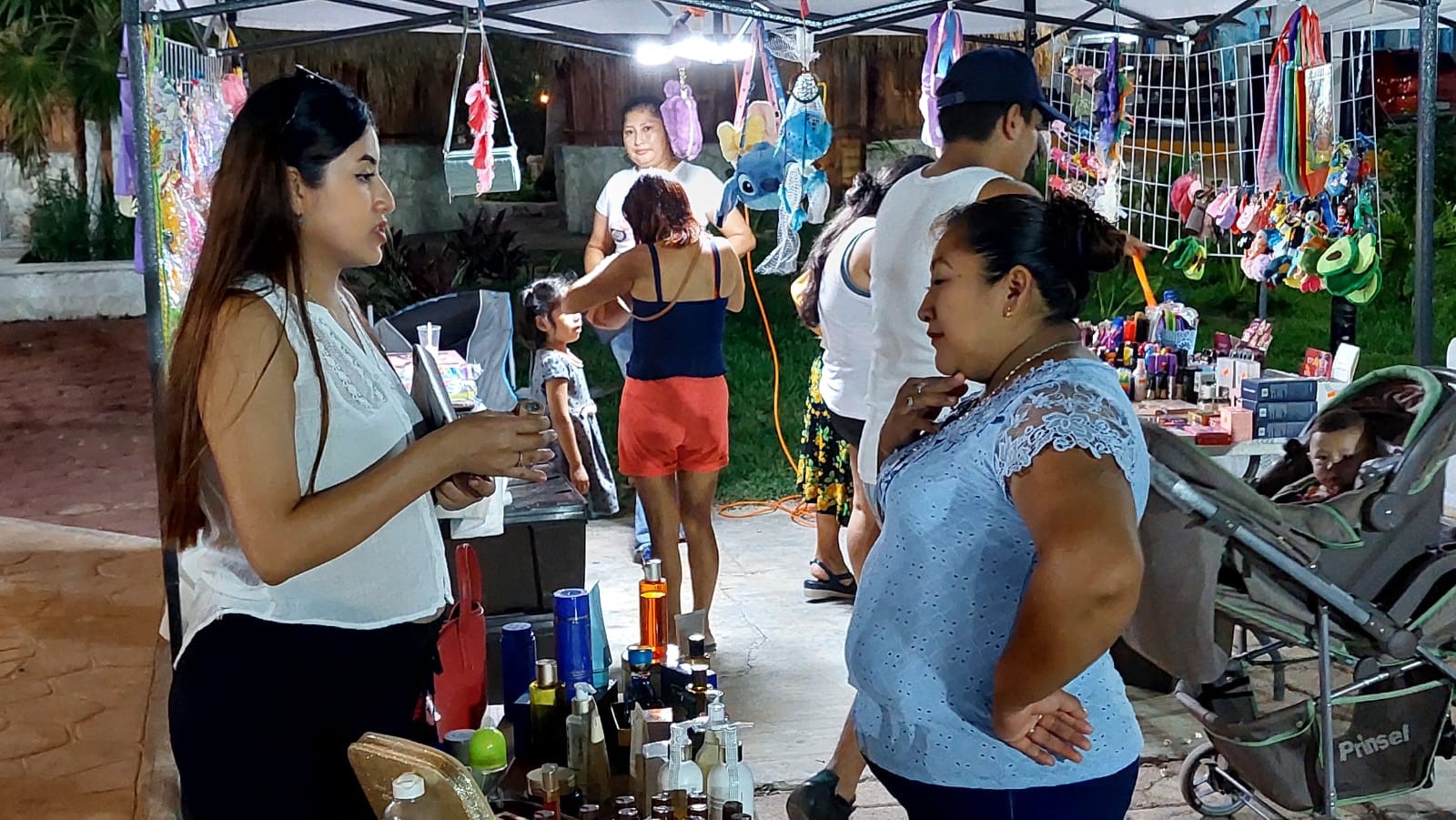 En los puestos que se instalan se ofrecen artesanías, novedades, cosméticos, bisutería, bordados, pulseras artesanales, trabajos en piel y gastronomía, con productos como frappés, pasteles y tamales.