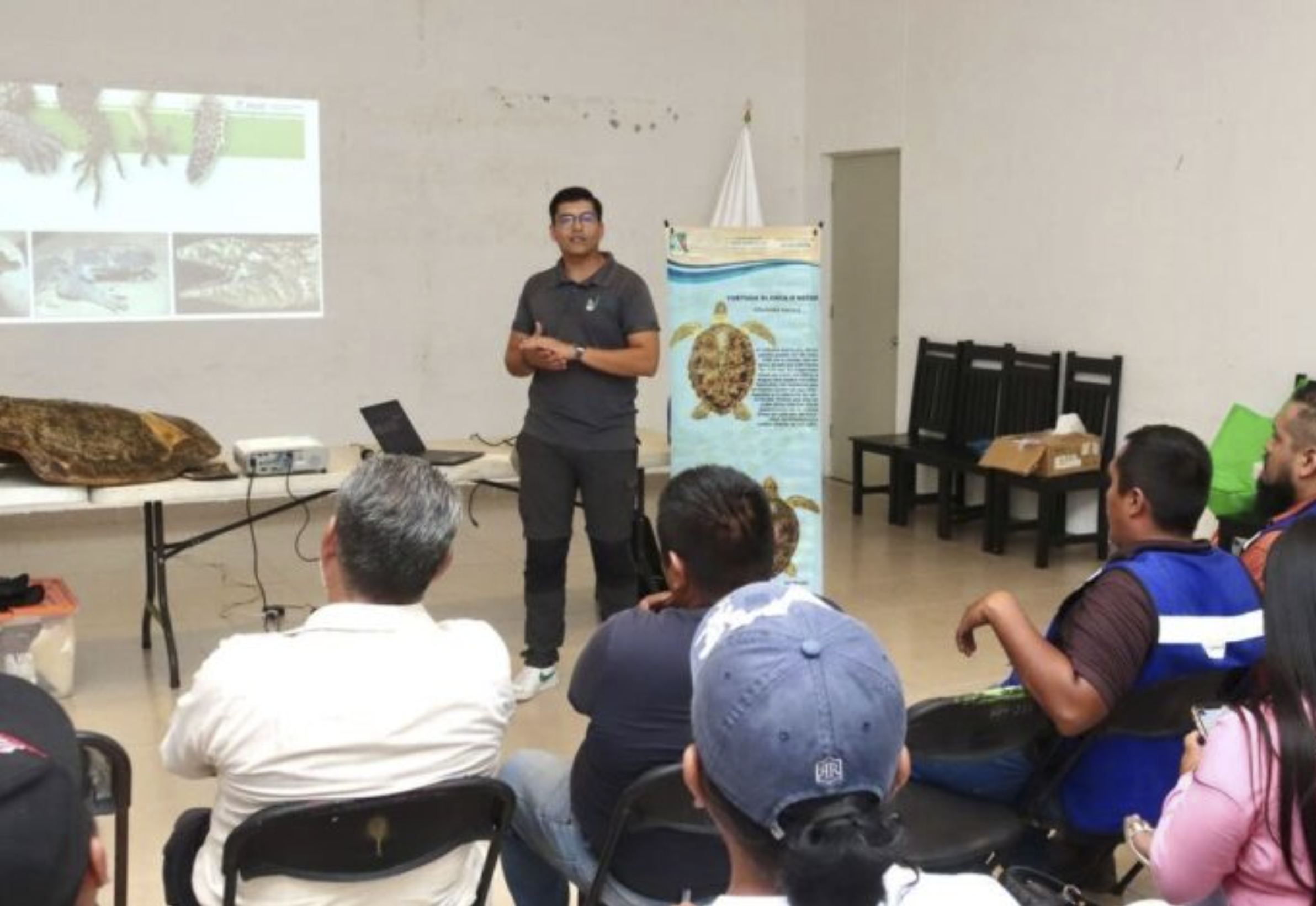 La charla fue impartida a 85 estudiantes de la institución educativa sobre “La conservación de las Tortugas Marinas”, especie que cobra relevancia por llegar a desovar a las costas del municipio, particularmente en las zonas de Punta Brava, Punta Petempich y Punta Caracol.