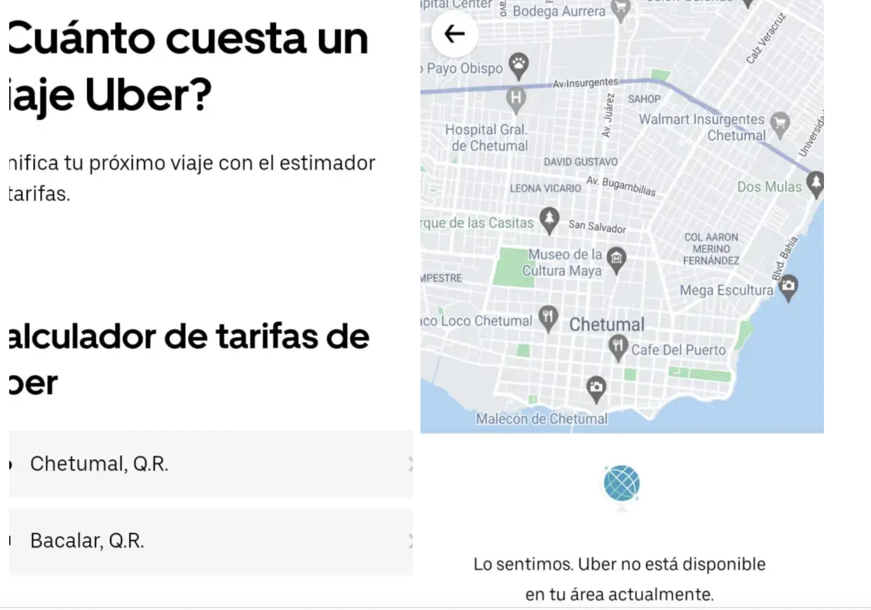 ¡En realidad todo se trató de una confusión! Ya que Uber tiene un calculador de tarifas predeterminado que funciona mediante el uso de google maps y la ubicación en tiempo real, de manera que te arrojará un precio estimado con base al recorrido en kilómetros, sin importar el lugar que tú le pongas, ¡incluso si buscas en Chetumal!