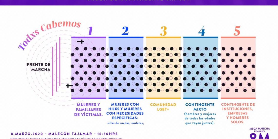 Las personas que deseen participar en la Mega Marcha Feminista deben acudir con vestimenta negra, carteles, flores o velas. El público en general tendrá un espacio para expresarse; se espera que asistan cientos de personas.