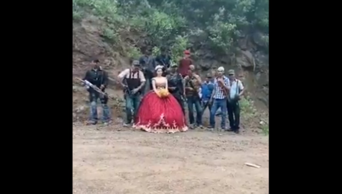 Resulta que en el mundo de Internet circula un video en el que se aprecia a una feliz quinceañera preparándose para tomarse una fotografía; sin embargo, lo que llama la atención es que en seguida aparecen un grupo de hombres armados dirigiéndose a la joven para también posar para la postal.