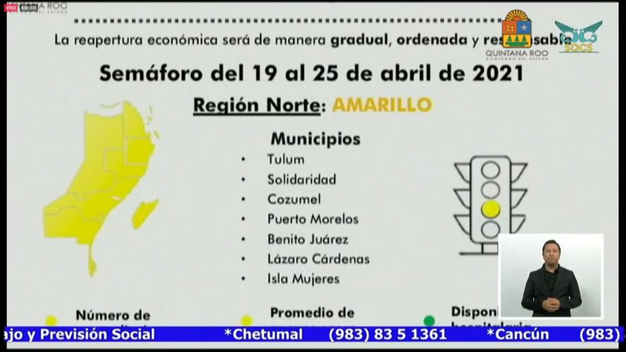El gobernador Carlos Joaquín González dio a conocer, la actualización del semáforo epidemiológico COVID para la semana del 19 al 25 de abril, todo el estado permanece en amarillo.
