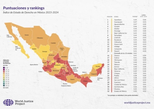 El informe destaca que el Estado de Derecho influye directamente en aspectos cotidianos como la seguridad pública, el acceso a la justicia, la salud, la igualdad de trato y la libertad de expresión. No obstante, ninguna entidad federativa alcanzó siquiera la mitad de la calificación ideal para un sistema con instituciones sólidas y confiables.