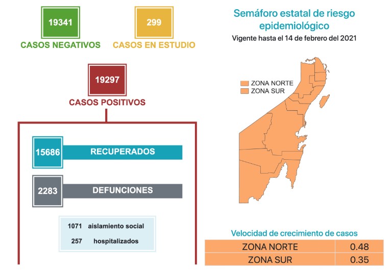 Panorama Quintana Roo sobre COVID-19, 08 febrero 2021: