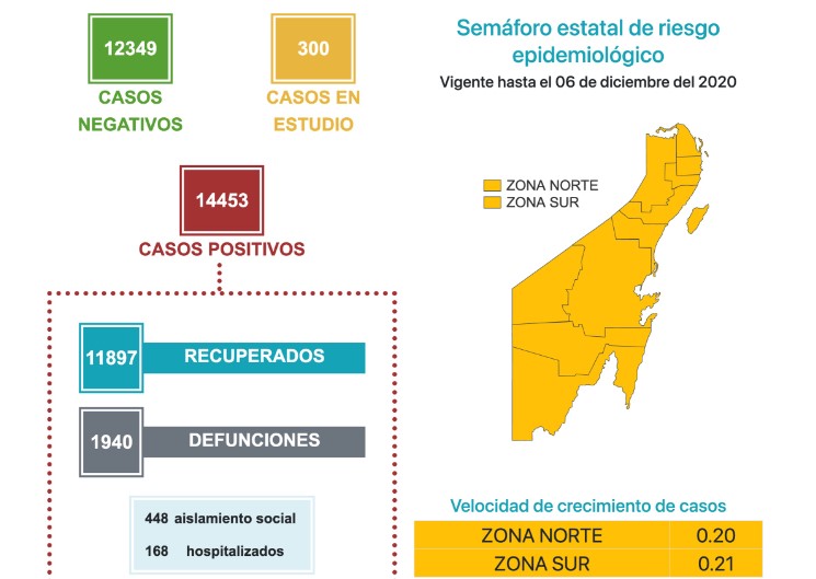 Panorama Quintana Roo sobre COVID-19, 30 noviembre 2020:
