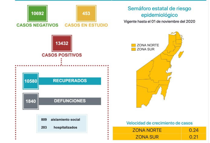 Panorama Quintana Roo sobre COVID-19, 30 octubre 2020: