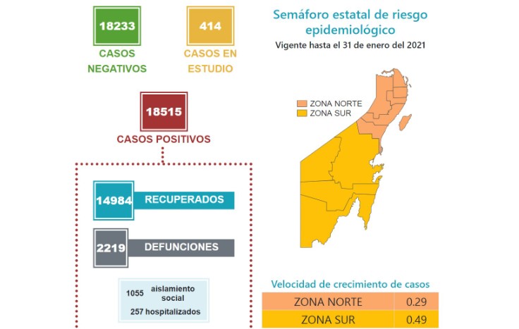 Panorama Quintana Roo sobre COVID-19, 28 enero 2021: