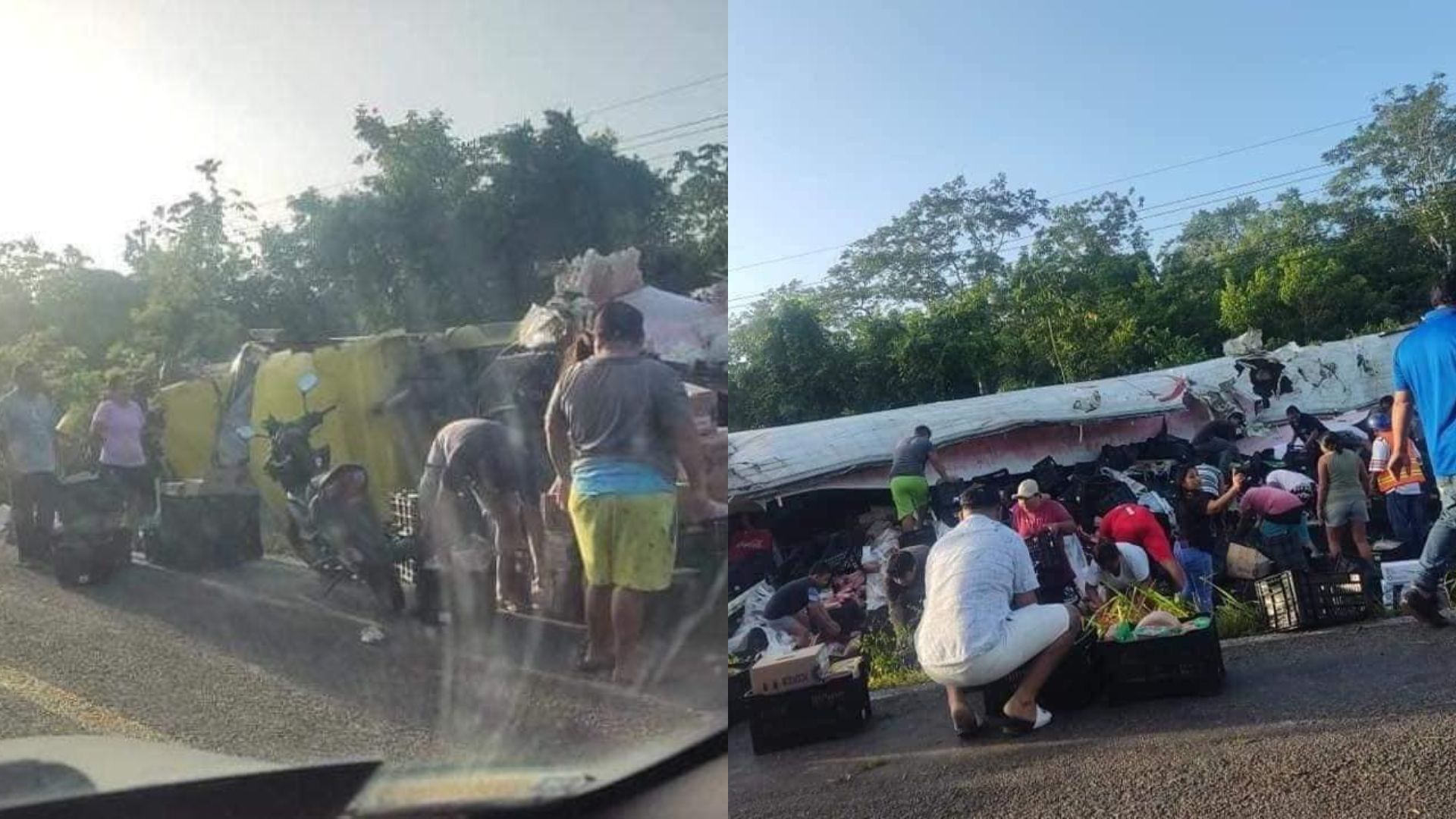Fue durante el sábado cuando un tráiler cargado de abarrotes se volcó sobre la carretera libre de Mérida- Cancún, por lo que los habitantes de la zona se enteraron y en cuestión de minutos se generó un caos tras el inicio de la rapiña por parte de las personas de la zona.