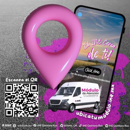 El Instituto Nacional Electoral en Quintana Roo, a través de la Vocalía del Registro Federal de Electores de la Junta Local Ejecutiva, informa a la ciudadanía que, los Módulos de Atención Ciudadana Itinerantes retomarán sus actividades de manera normal a partir de mañana 24 de febrero de 2026.