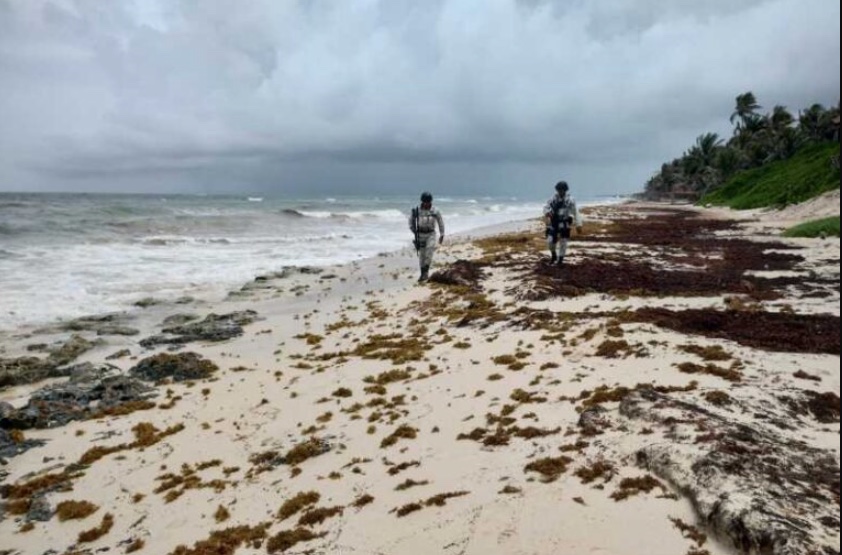 Entre el sargazo de una playa de Tulum fueron localizados dos paquetes con aparente cocaína, los cuales quedaron bajo el resguardo de la autoridad judicial federal.