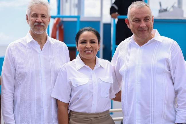 Los visitantes también fueron recibidos en el Muelle Fiscal por el titular de la Secretaría del Medio Ambiente del gobierno del Estado, Óscar Rébora, y por Víctor Manuel Vidal Martínez, titular del Instituto Mexicano de Investigaciones en Pesca y Acuacultura.