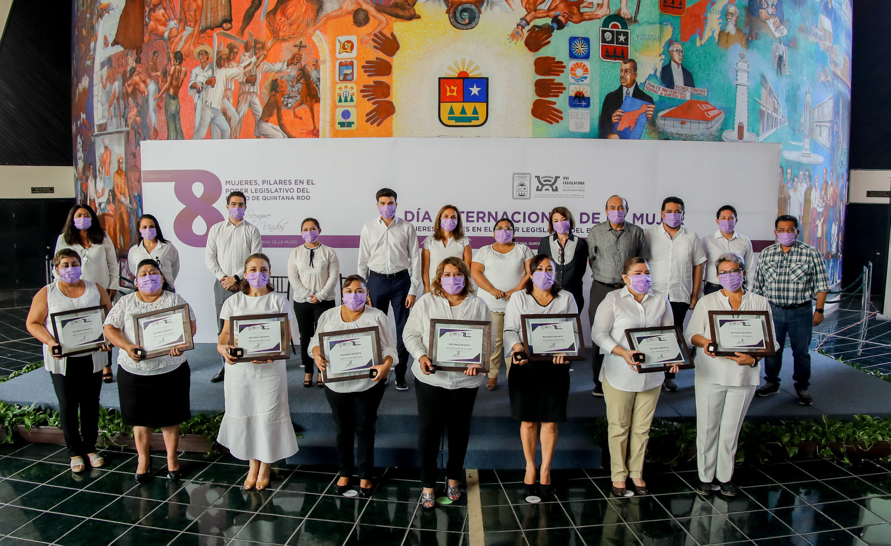 En el marco de la conmemoración del Día Internacional de la Mujer, la XVI Legislatura del Estado de Quintana Roo hizo un reconocimiento a ocho mujeres que laboran en el Poder Legislativo, que han destacado por su trayectoria, dedicación y años de servicio en esta institución.