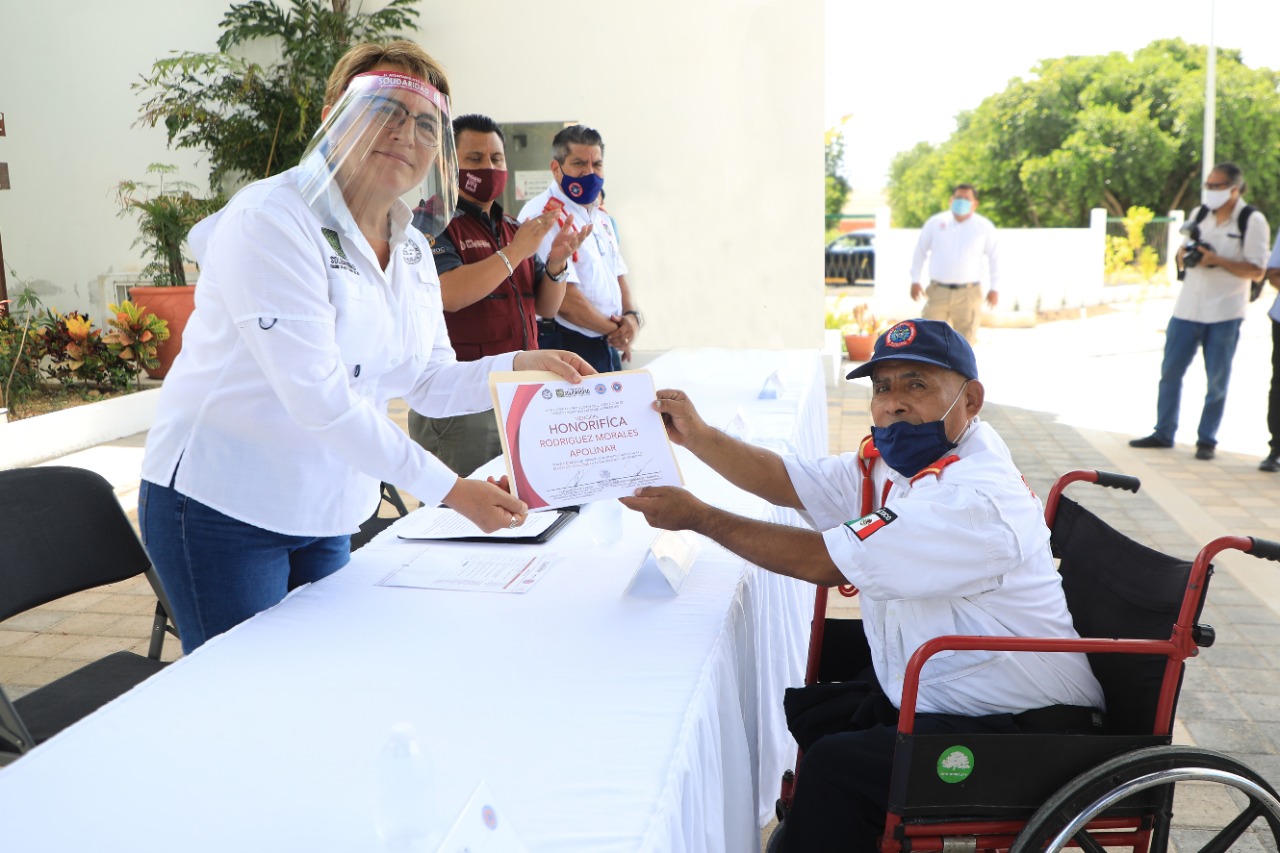 Acompañaron a la presidenta municipal en el evento protocolario que tuvo lugar en el nuevo palacio municipal, el secretario de Protección Civil, Prevención de Riesgos y Bomberos, Francisco Poot Kauil; el director del Cuerpo de Bomberos de Solidaridad, Eduardo Hernández Martínez y el secretario general del Ayuntamiento, Alfredo Paz Cetina, entre otros.