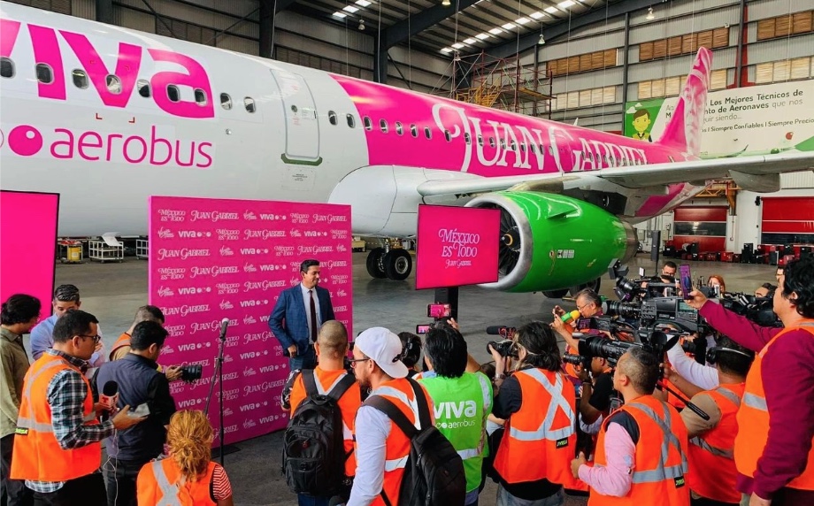 Ocurrió en el avión A321 matrícula XA-VBV, correspondiente a la aerolínea Viva Aerobús, el cual, además de llevar el nombre del Divo de Juárez, porta su imagen pintada en color rosa, en alusión al nuevo sencillo “Méxxico es todo”, cuya portada, por cierto, tiene al fallecido cantante vestido de piloto, con gafas oscuras y un avión rosado de fondo.