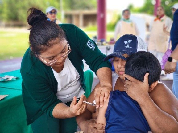 En Mahahual se brindaron servicios de vacunación a la comunidad, beneficiando a niñas, niños, personas adultas y adultos mayores, como parte del compromiso institucional de garantizar el acceso oportuno a la prevención y al cuidado de la salud.