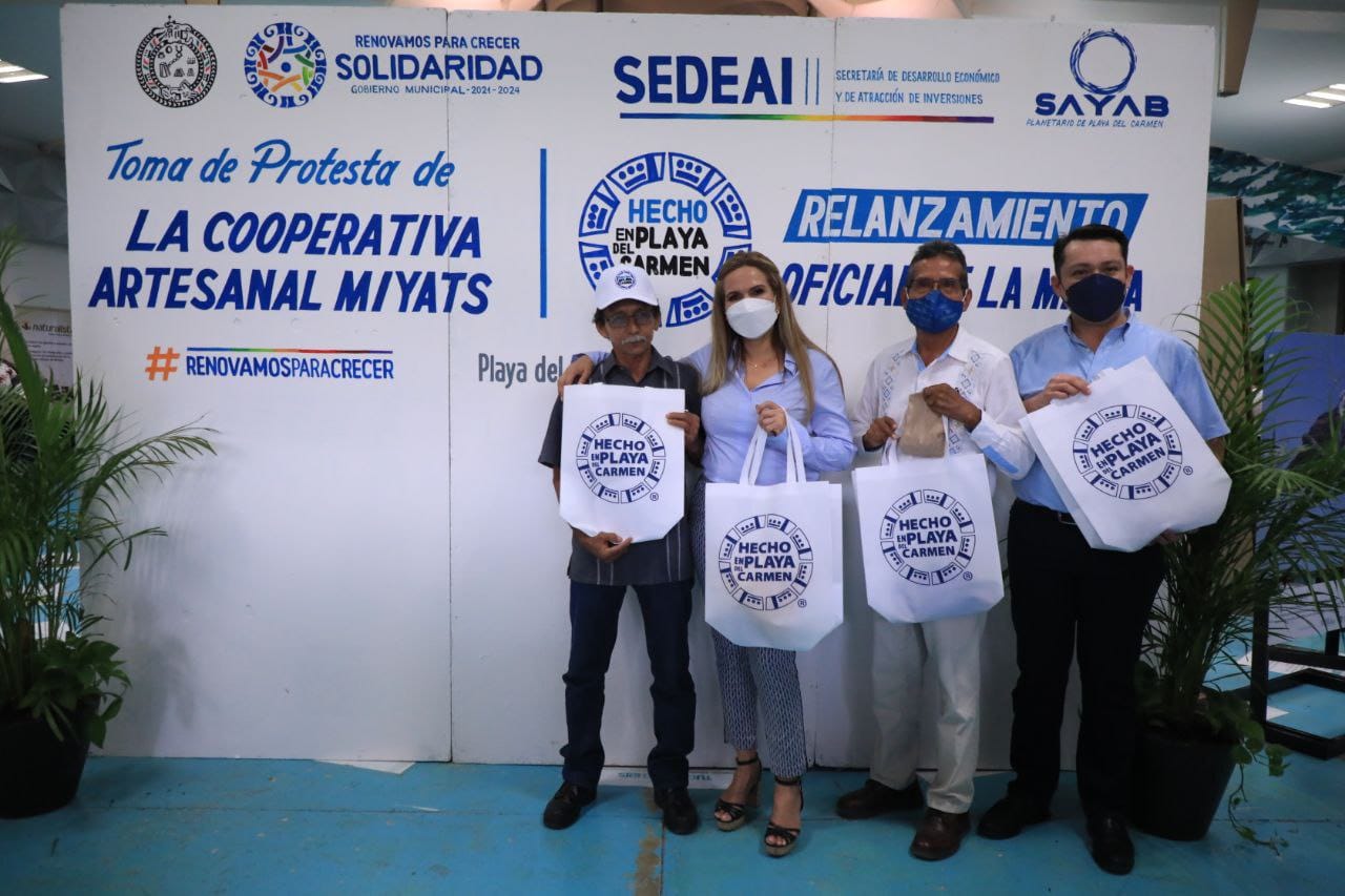 Con el objetivo de impulsar la reactivación económica de Solidaridad mediante productos locales, la presidenta municipal, Lili Campos Miranda, a través de la secretaría de desarrollo económico y atracción de inversiones llevó a cabo el relanzamiento de la marca «Hecho en Playa del Carmen”, al mismo tiempo que se realizó la toma de protesta a integrantes artesanos de la cooperativa Miyat’s.
