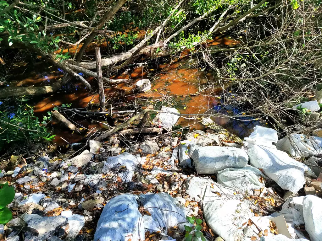 Durante un recorrido por la zona se constató la presencia de amplias áreas de manglar alteradas con escombros, piedras y basura: latas, botellas, garrafones de aceite, bidones de gasolina y restos de ductos de aire acondicionado industrial, entre otros residuos que afectan la calidad ambiental y ponen en riesgo a especies locales, algunas en peligro de extinción.
