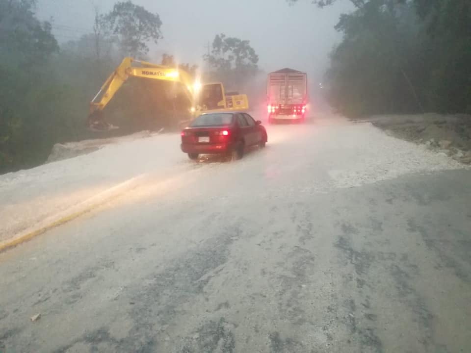En el kilómetro 156 +900, donde recientemente se había registrando un desfonde que fue reparado por la Secretaria de Comunicaciones y Transportes (SCT), pero por efectos de la fuerte lluvia la zona volvió a colapsar, lo que ameritó una segunda intervención.