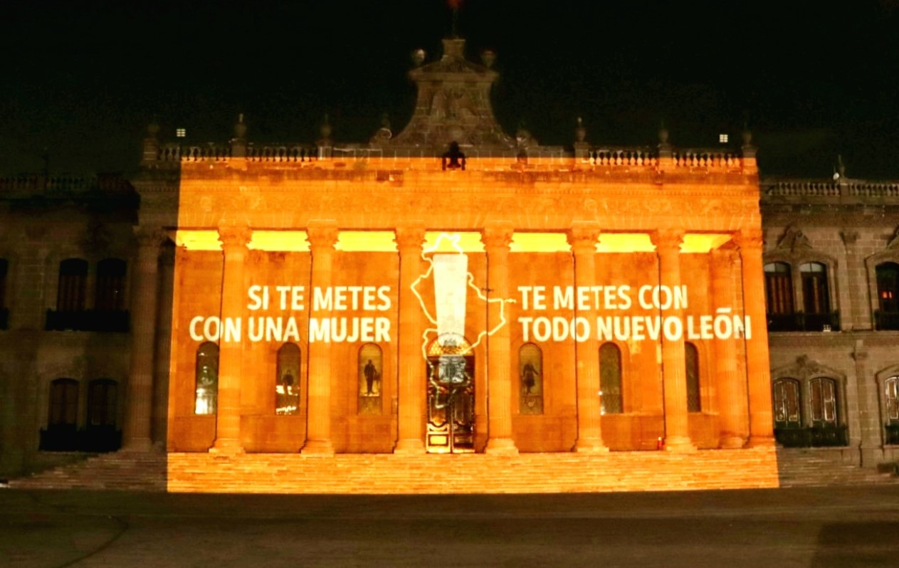 García Sepúlveda publicó una imagen del Palacio de Gobierno, donde el color natural de la cantera rosa, aparece sustituido por el naranja y la imagen con el siguiente texto: “Desde el Palacio de Gobierno tenemos un mensaje muy claro: Si te metes con una mujer, te metes con todo Nuevo León”.