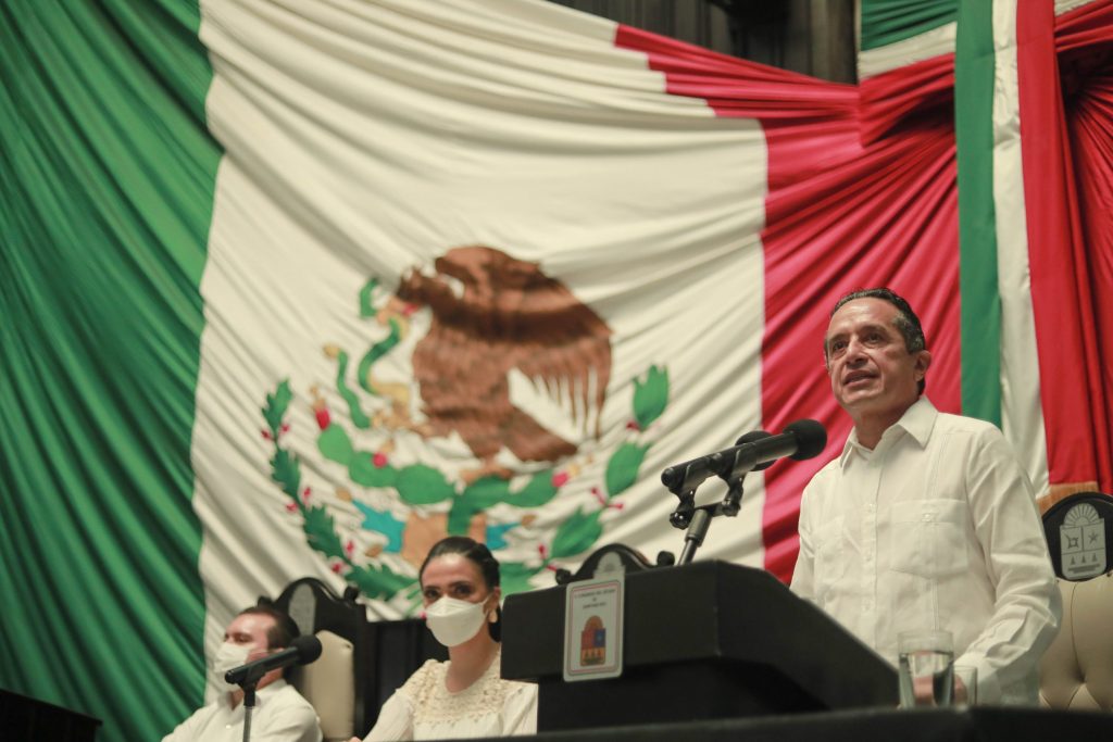 Se trata de la libertad de pensar, de alzar la voz y de expresarse libremente sin temer del yugo autoritario o del exilio por no pensar igual; así como devolverle la potestad a una ciudadanía para constituirse en una sociedad abierta, plural, incluyente, lo que significa encontrarse con el propósito de vivir una vida plena en democracia, expresó el mandatario quintanarroense desde la máxima tribuna del Congreso del estado.