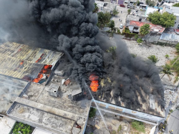 El siniestro ocurre sobre la Avenida Tulum, en el tramo comprendido entre Ruta 4 y Ruta 5, donde unidades de emergencia trabajan para contener las llamas.