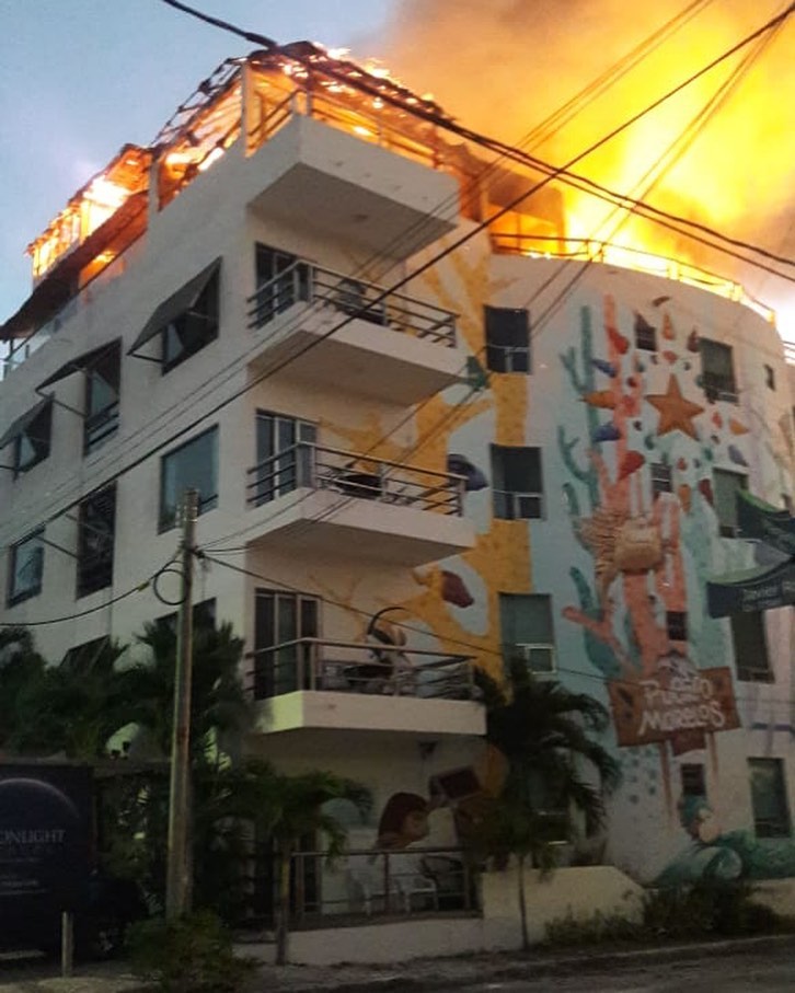 Más de 30 personas entre huéspedes y empleados del hotel Moon Light en Puerto Morelos México fueron desalojados al incendiarse una palapa en la parte superior. No hubo lesionados