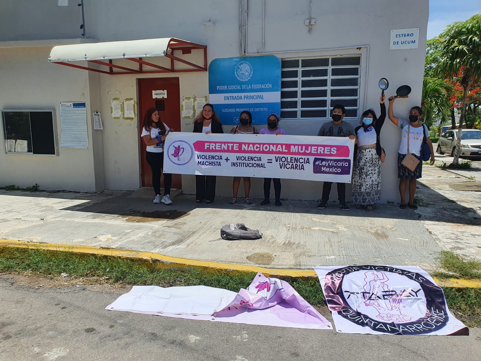 Integrantes del Frente Nacional de Mujeres del Estado de Quintana Roo se manifestaron este día en el Juzgado Primero de Distrito del Poder Judicial de la Federación, con sede en Chetumal, para protestar por la dificultad para acceder a la justicia de las mujeres que son víctimas de violencia vicaria.