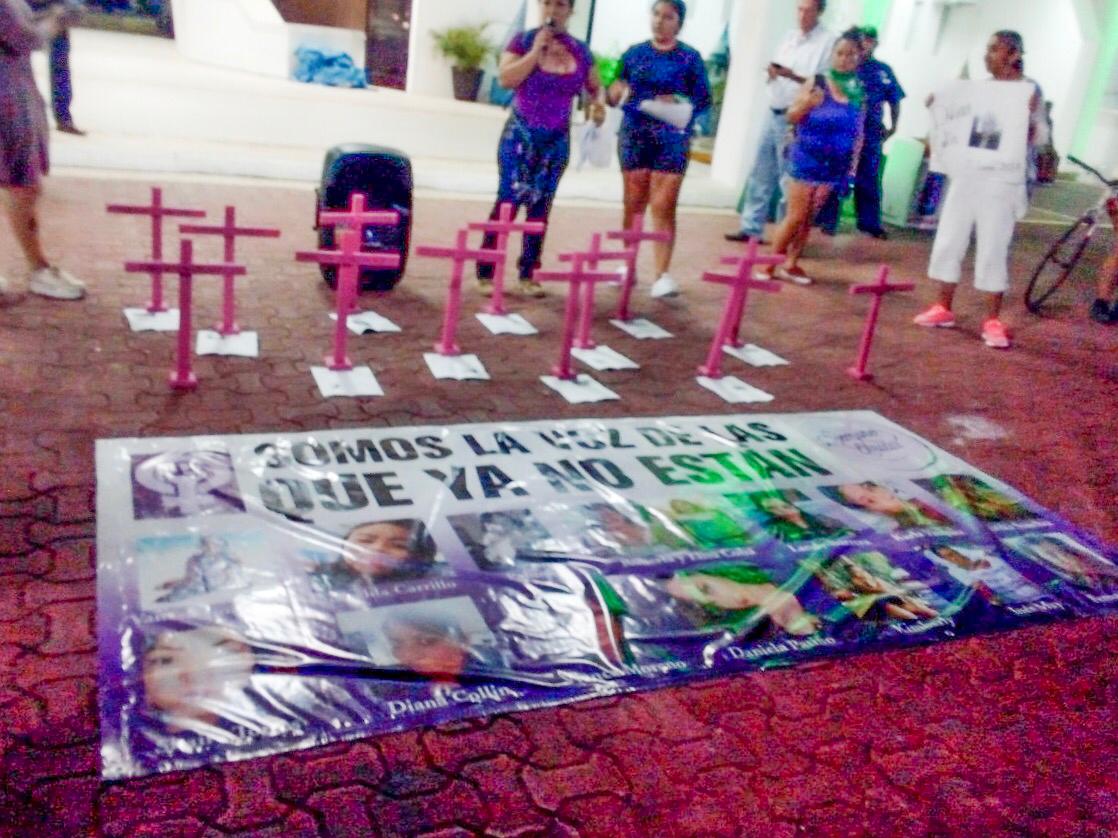 Playa del Carmen.- El gobierno de Solidaridad que preside Laura Beristain Navarrete, se suma a la demanda de los diversos colectivos de mujeres, quienes en el Día Internacional de la Eliminación de la Violencia Contra la Mujer, realizaron una marcha que culminó frente al palacio municipal, para pedir a la autoridad municipal el apoyo a fin de agilizar el esclarecimiento de los feminicidios.