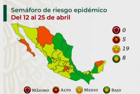 El doctor José Luis Alomía, Director General de Epidemiología, indicó que para las próximas dos semanas, que van del lunes 12 de abril al domingo 25 de abril, no hay estados en color rojo.