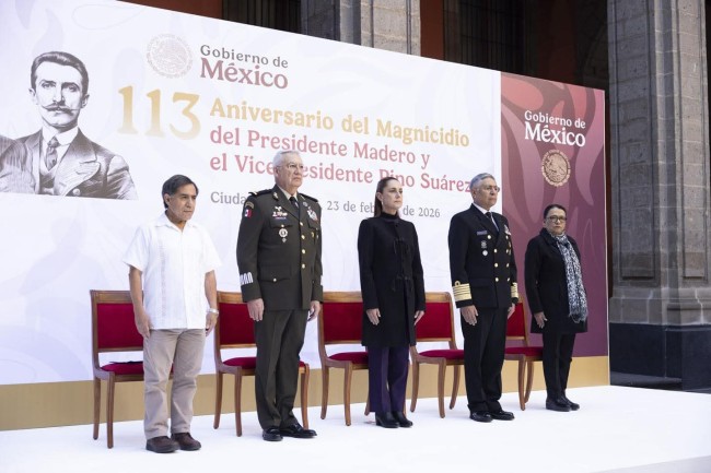 La Presidenta de México, Claudia Sheinbaum Pardo, encabezó la ceremonia por el 113 Aniversario del magnicidio del presidente Francisco I. Madero y del vicepresidente José María Pino Suárez en el Patio de Honor de Palacio Nacional.