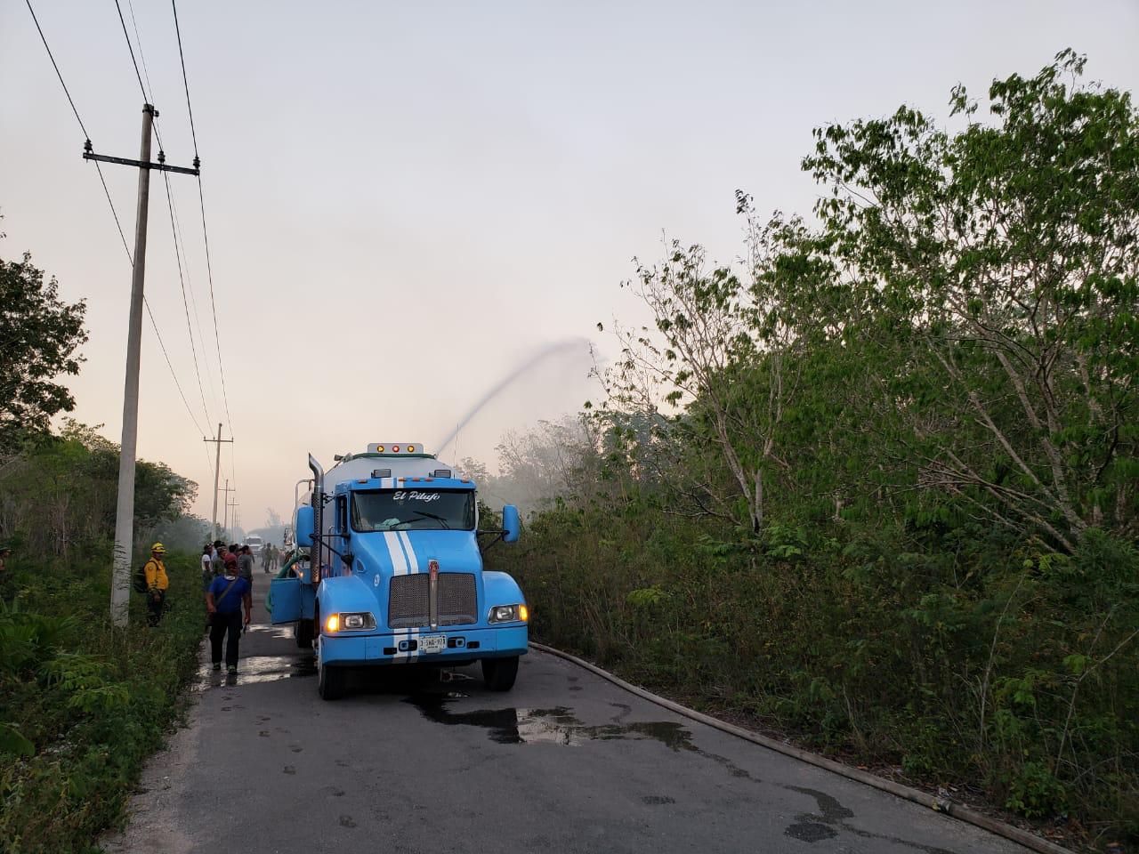 Ortiz Maya mencionó que durante los trabajos mantuvieron 2 pipas con 20 mil litros de agua cada una, así como una camioneta adaptada que entra a las brechas con mil litros para contrarrestar la afectación además de maquinaria pesada bulldozer que se utilizó para mover la tierra y excavar.