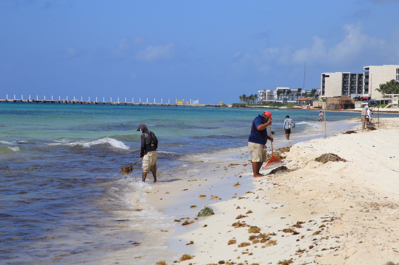 A estas labores se suman las tareas que realiza la Secretaría de Marina en aguas someras, con el apoyo de una sargacera (con capacidad de recolecta de 100 toneladas por día) y dos embarcaciones menores que trasladan el material recolectado a la orilla para descargarlas.