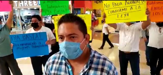 Se manifiestan empleados del gimnasio “California Fitness”, de la plaza comercial Centro Maya en Playa del Carmen, ya que la empresa les ha disminuido su sueldo a un 50 %, además de no pagarles el aguinaldo.