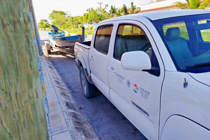 Guardaparques de la Comisión Nacional de Áreas Naturales Protegidas (Conanp) sorprendieron a estas cuatro personas, en una lancha de nombre “Víctor”, cerca de la Punta Sur, dentro del Parque Nacional Arrecifes de Cozumel.