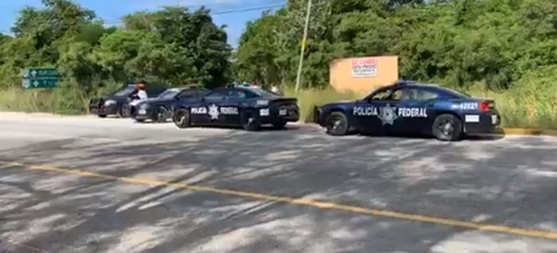 Elementos de la policia municipal y federal realizan operativo de búsqueda en la carretera federal, Cancún – Playa del Carmen